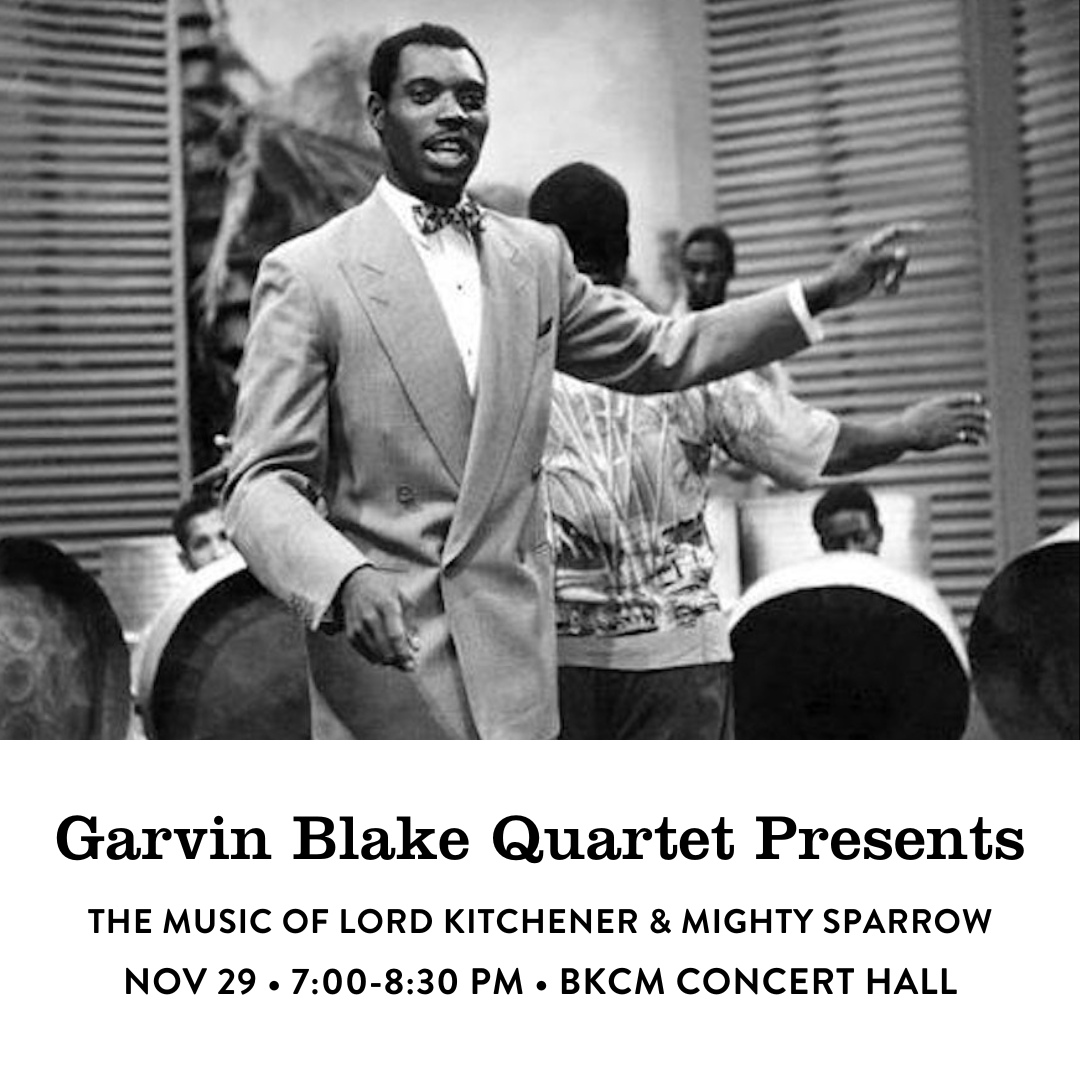 Please join The Garvin Blake Quartet for a musical Thanksgiving at the elegant Brooklyn Conservatory of Music, celebrating the timeless artistry of Lord Kitchener and The Mighty Sparrow — calypso classics reimagined through the sound of jazz and steel pan.