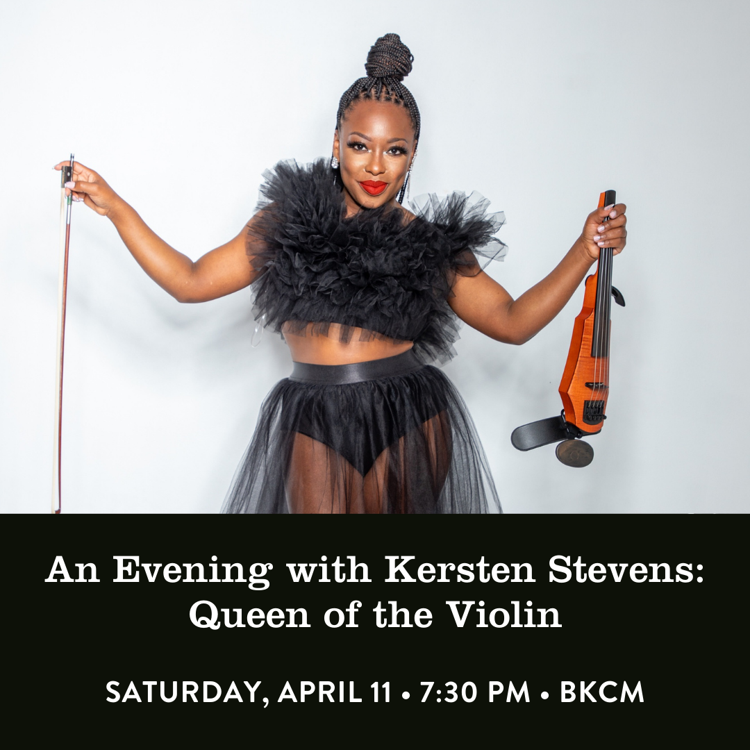 Genre-defying violin virtuoso and 2025-26 BKCM Jazz Leadership Fellow Kersten Stevens and her band take the stage at BKCM’s Concert Hall at 58 Seventh Avenue, Brooklyn. Tickets are free with registration.
