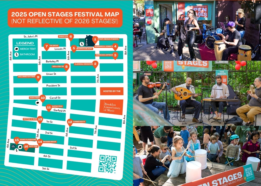 Open Stages is a neighborhood-wide, free music festival with stages all over Park Slope, and a celebration of Brooklyn’s vibrant music scene. On May 9, 2026, we’re back for Open Stages 2026!