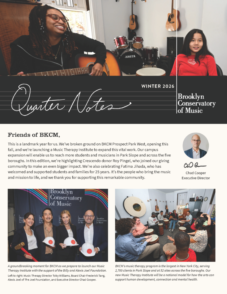 Read recent issues of the Brooklyn Conservatory of Music’s quarterly donor newsletter, Quarter Notes.